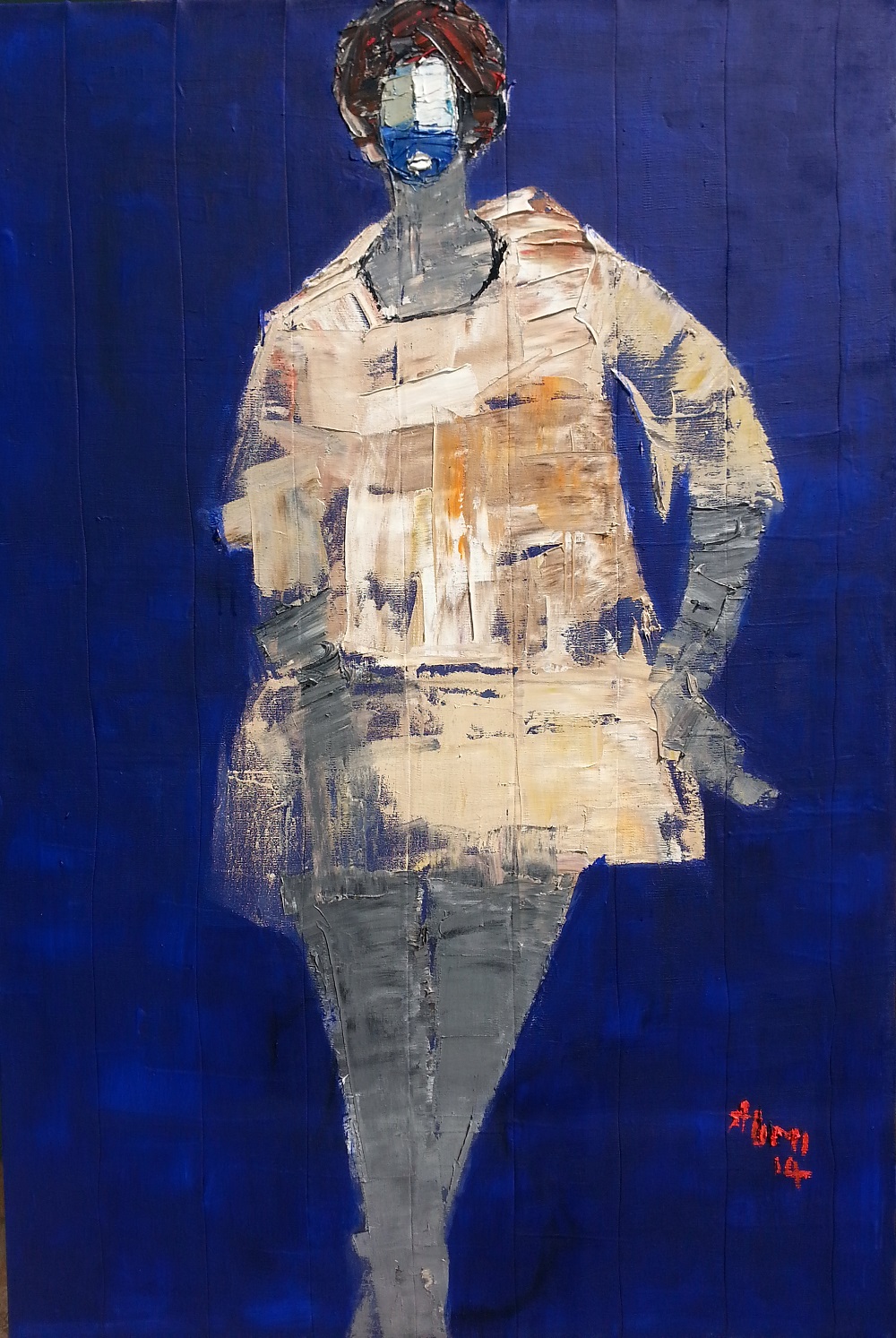 These body of work are rendered on Aso Oke fabric, Aso Oke is a hand loomed cloth woven by the Yoruba people of south west Nigeria usually woven by men, cloth weaving (Aso-Oke) started centuries ago amongst the Yoruba’s. The appropriation of this material is used to juxtapose the ancient with the modern the ancient tapestry as the background for the contemporary painting.
